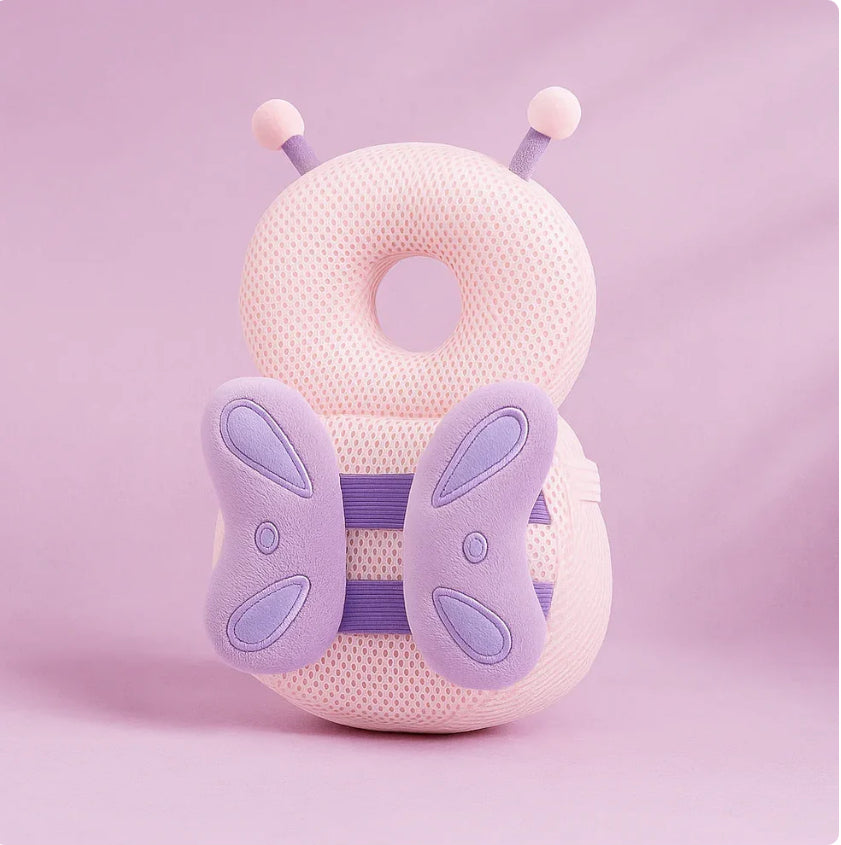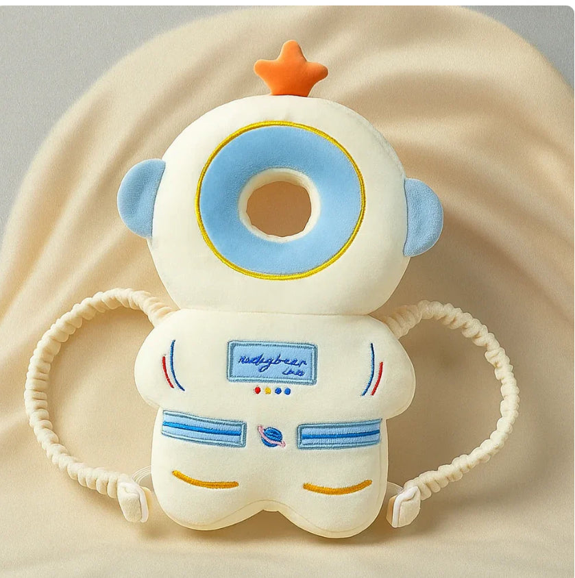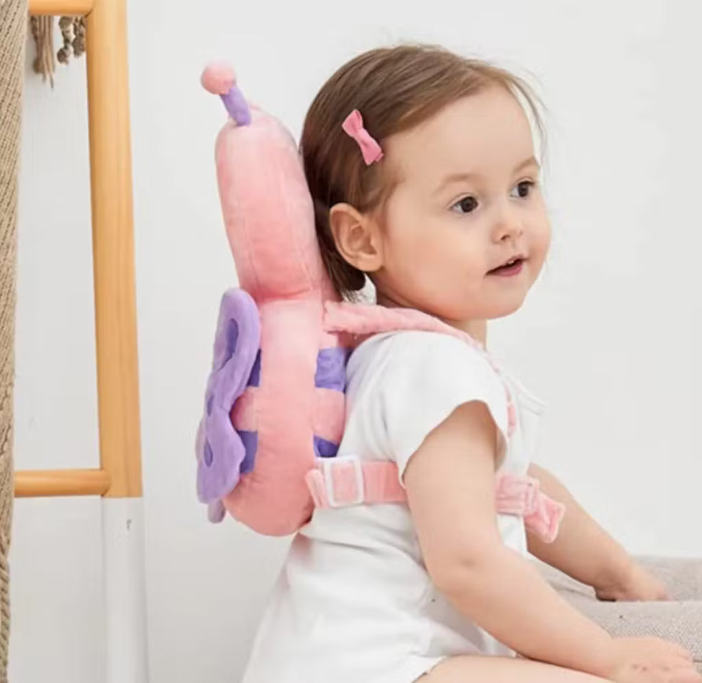 Den mjuka, vadderade designen fungerar som en lätt ryggsäck som skyddar huvud och rygg, utan att begränsa rörelsefriheten.