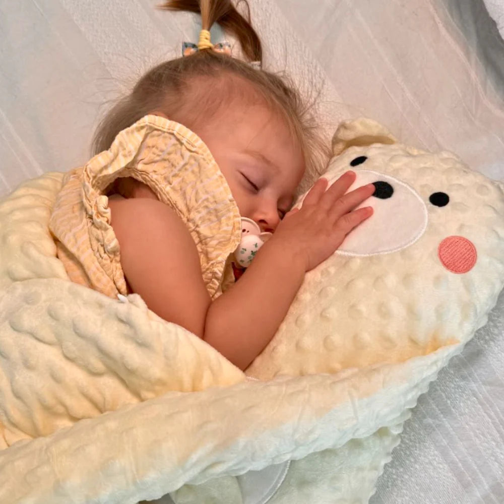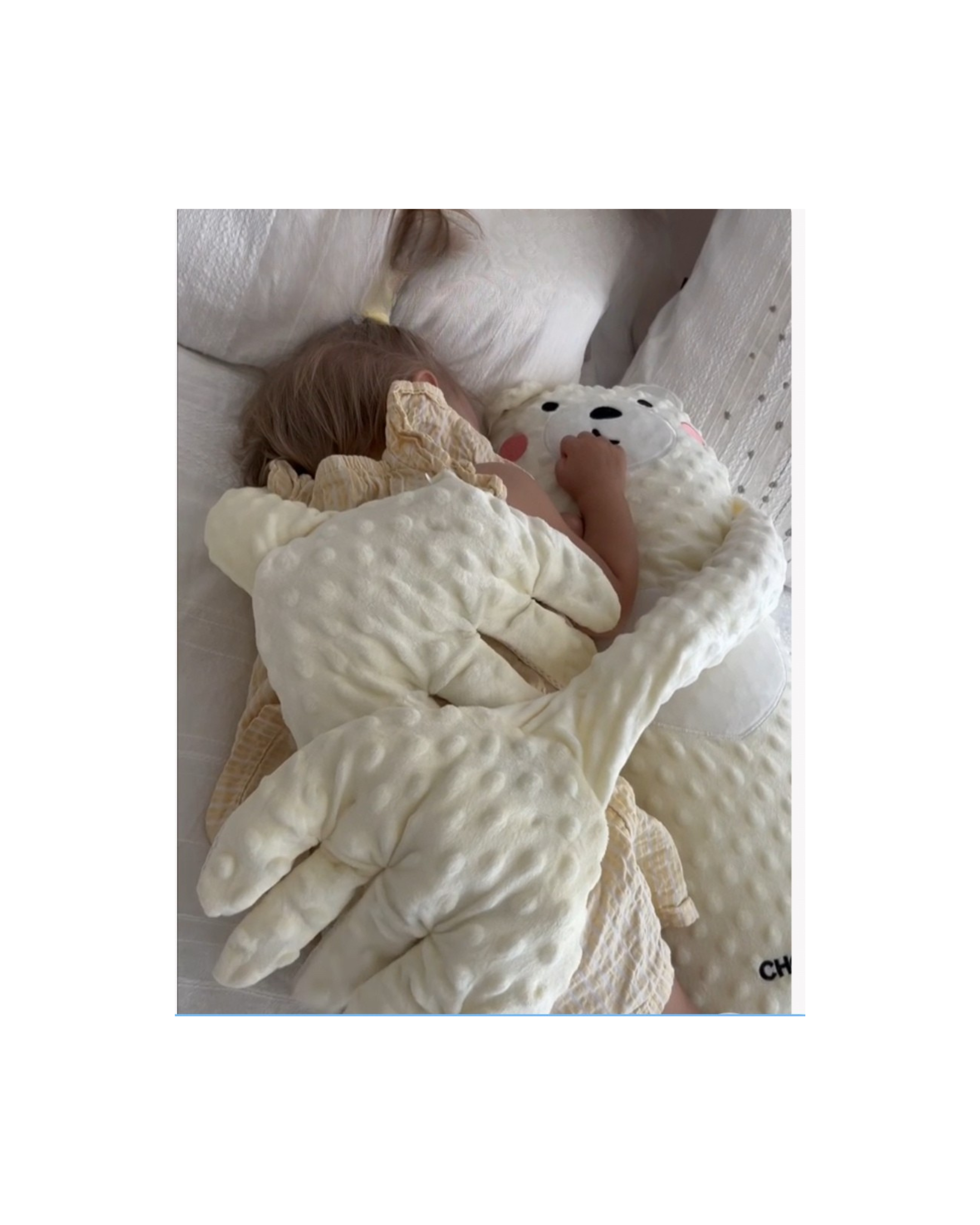 DreamCub™ lugnar istället med en mjuk, rytmisk klappning som efterliknar en förälders beröring — något som bebisar förknippar med trygghet och närhet.